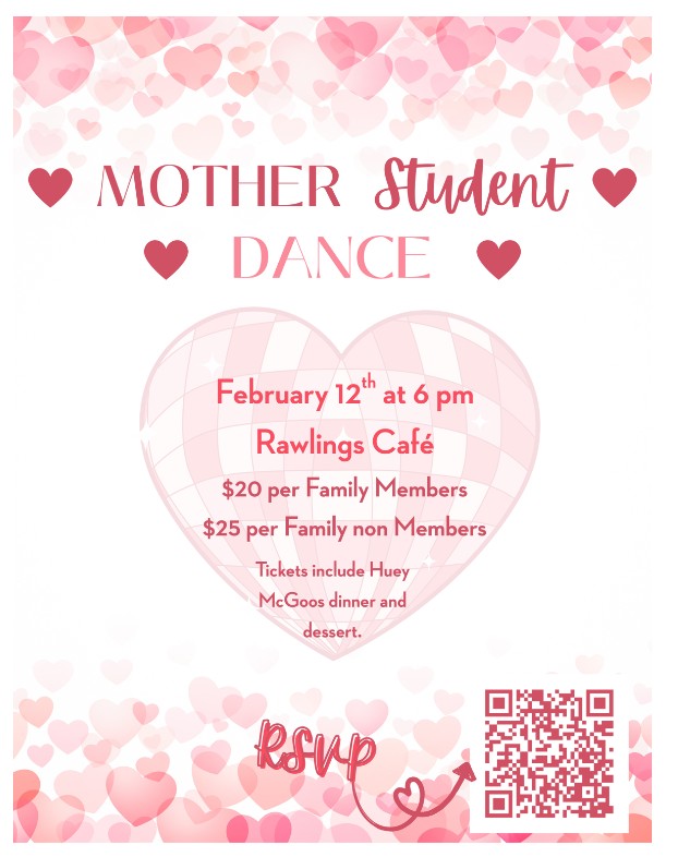 Feb. 12: Mother Student Dance (Rawlings Café) 6:00 pm