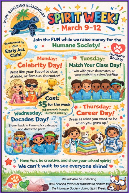 March 9 – 12: Spirit Week sponsored by Early Act